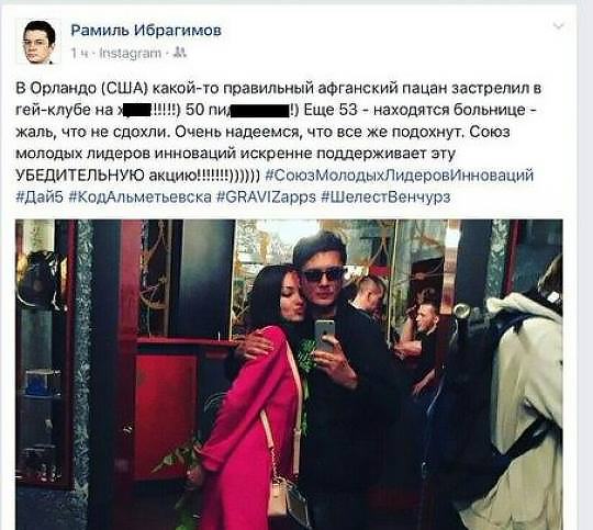 Рамиль Ибрагимов, глава Союза молодых лидеров инноваций Республики Татарстан, поддержал недавний теракт в Орландо, США.