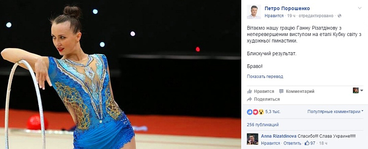 На своей официальной странице в Facebook президент Украины Петр Порошенко поздравил Анну с достижением: