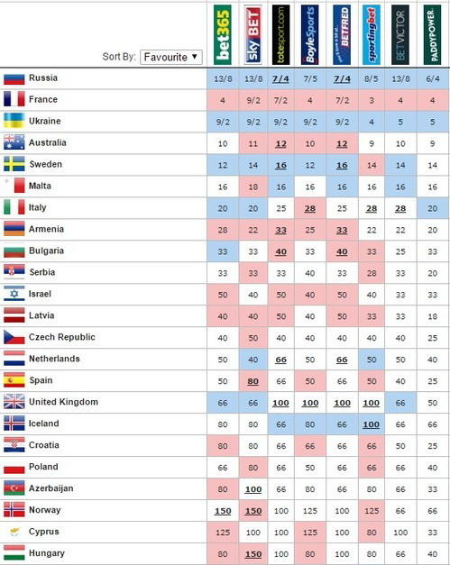 После первого полуфинала вокального телешоу «Евровидение 2016», букмекеры опубликовали новые прогнозы результатов конкурса.