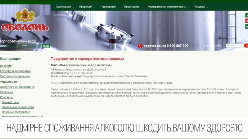 На официальном сайте завода «Оболонь» размещена информация о сотрудничестве с севастопольским заводом.