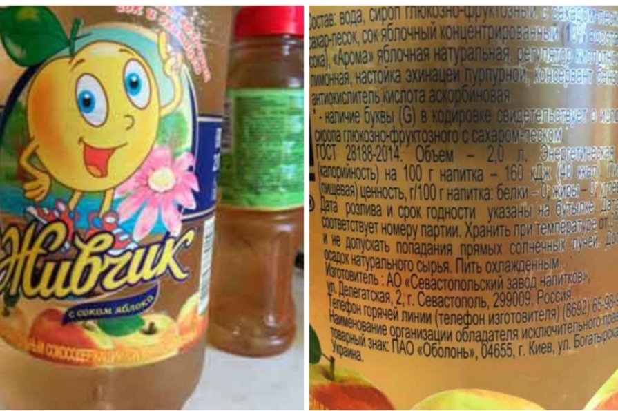 Об этом сообщает он-лайн газета Меридиан.Севастополь. На этикете продукции изготовитель указан как АО «Севастопольский завод напитков», а наименование организации обладателя права на товарный знак − ПАО «Оболонь».