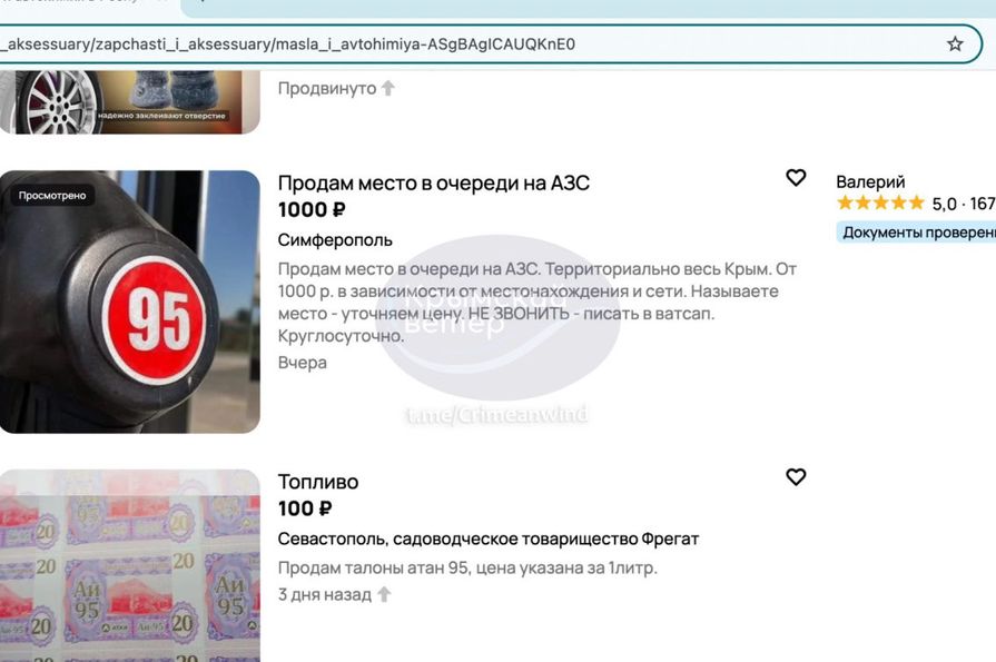 Дефіцит бензину призвів до нової «схеми»: в інтернеті з’явилися оголошення про продаж не лише талонів на пальне, а й… місць у черзі. Люди змушені їздити дорогами у пошуках пального, аби не зупинитися на узбіччі.