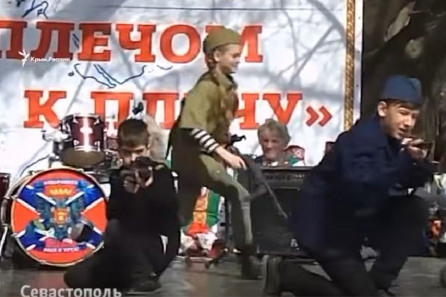Концерт в Севастополе, или, как его назвали оккупационные власти, «культурно-патриотический фестиваль «Плечом к плечу», содержал незабываемый номер. На сцену вышли дети, с макетами оружия в руках, и спели песню о войне «Брата за брата».