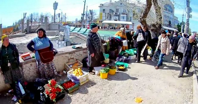 Стихийные торговцы продолжают торговать прямо на руинах и активно предлагают прохожим овощи, зелень и украинские колбасы, сообщает пропагандистское крымское СМИ.