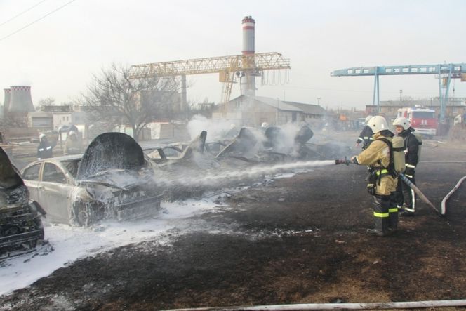Пожар уничтожил 14 и повредил еще 6 автомобилей на автостоянке в симферопольском пгт. ГРЭС.