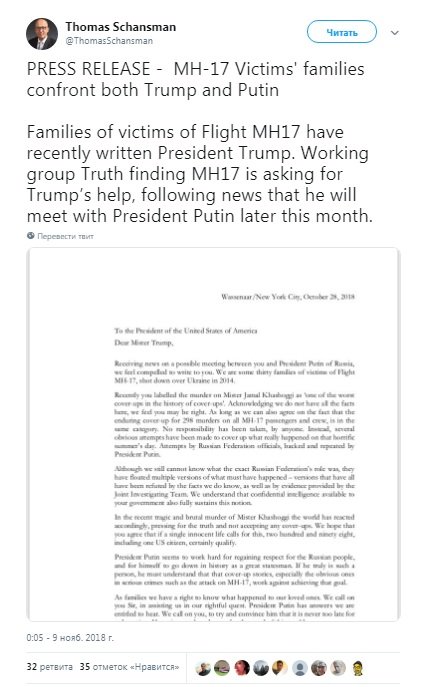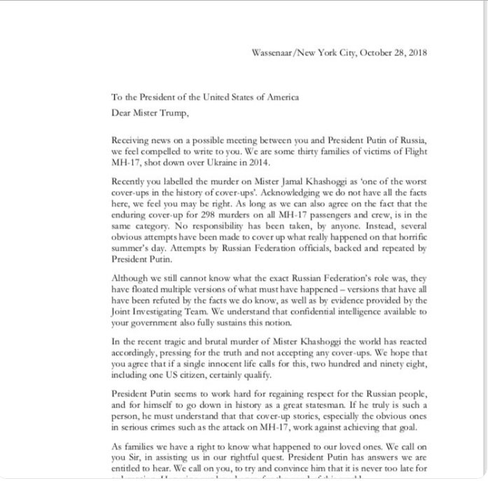 Родственники жертв MH17 просят Трампа убедить Путина искупить вину