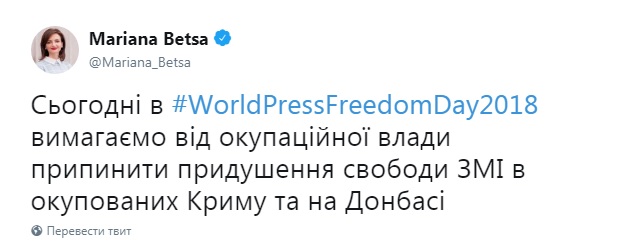 «Сегодня в #WorldPressFreedomDay2018 требуем от оккупационной власти прекратить подавление свободы СМИ в оккупированных Крыму и на Донбассе», — говорится в сообщении.