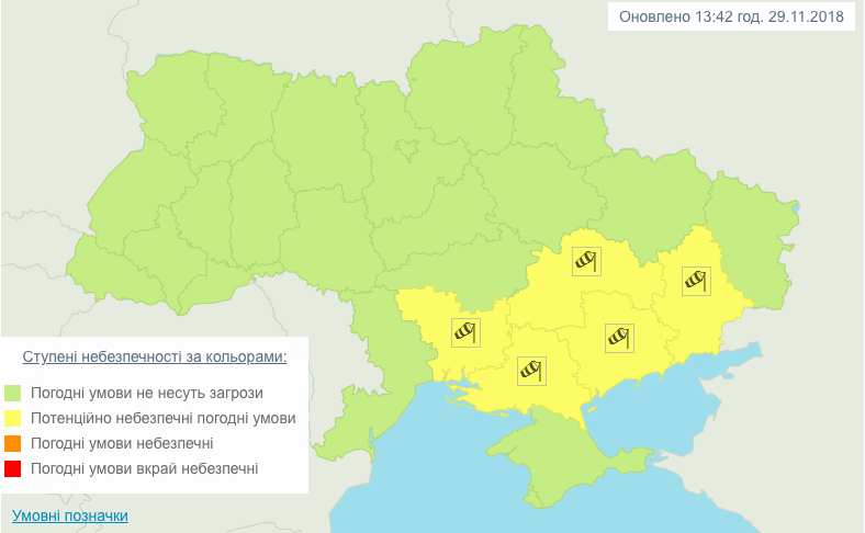 30 ноября–1 декабря во многих регионах Украины ожидается ухудшение погодных условий, в некоторых областях объявлено штормовое предупреждение.