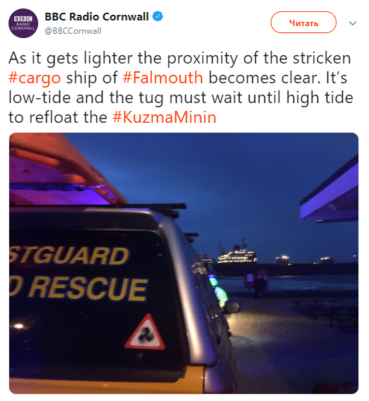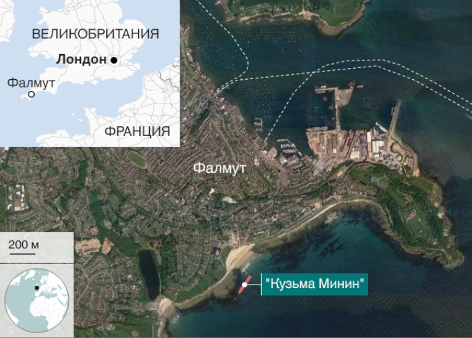 Российский сухогруз «Кузьма Минин» сел на мель у юго-западных берегов Британии в нескольких метрах от берега в бухте Фалмут в графстве Корнуолл.