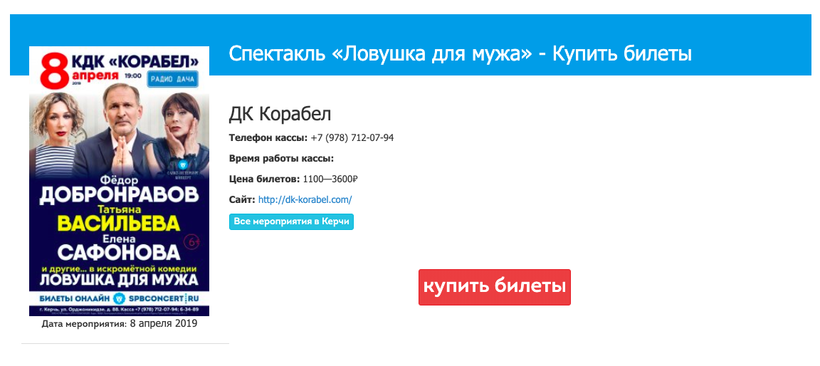 Скриншот с сайта spbconcert.ru, где можно купить билеты на спектакль