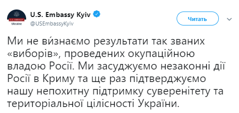 Такой же позиции придерживаются и в посольстве США в Украине.