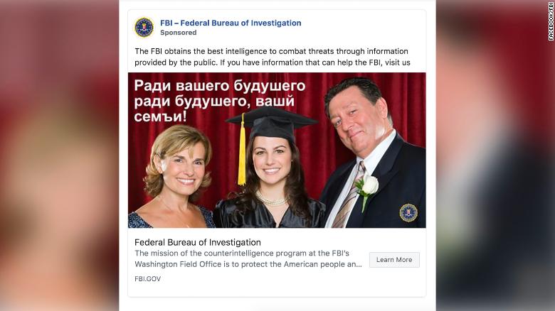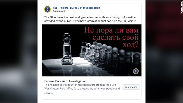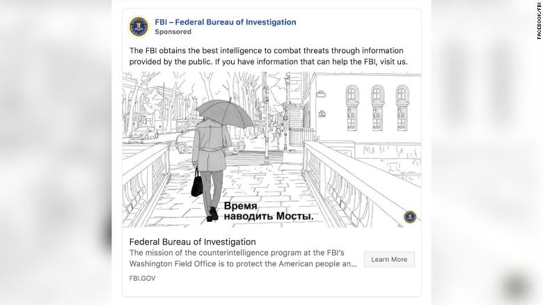 Как сообщает CNN, ФБР в Facebook размещает материалы, нацеленные на «российских разведчиков» с целью их «перевербовки», и на людей, которые могут располагать информацией о «русских агентах».