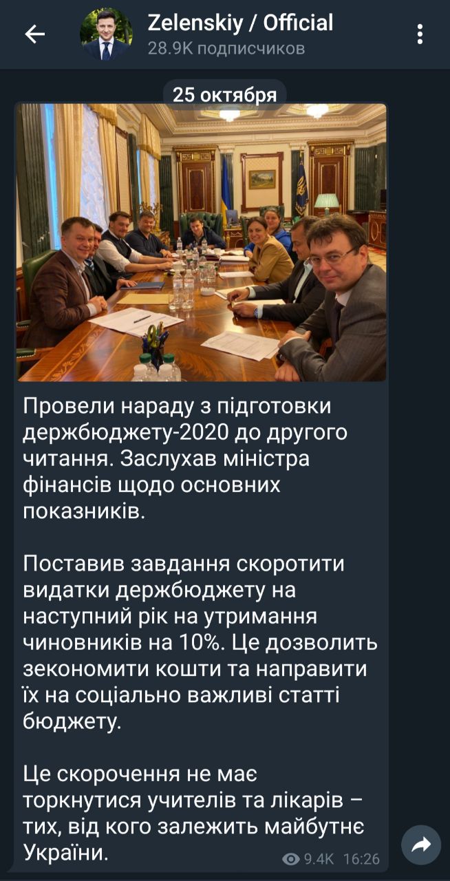 Президент Украины Владимир Зеленский поставил задачу сократить на 10% бюджетные расходы на содержание чиновников.