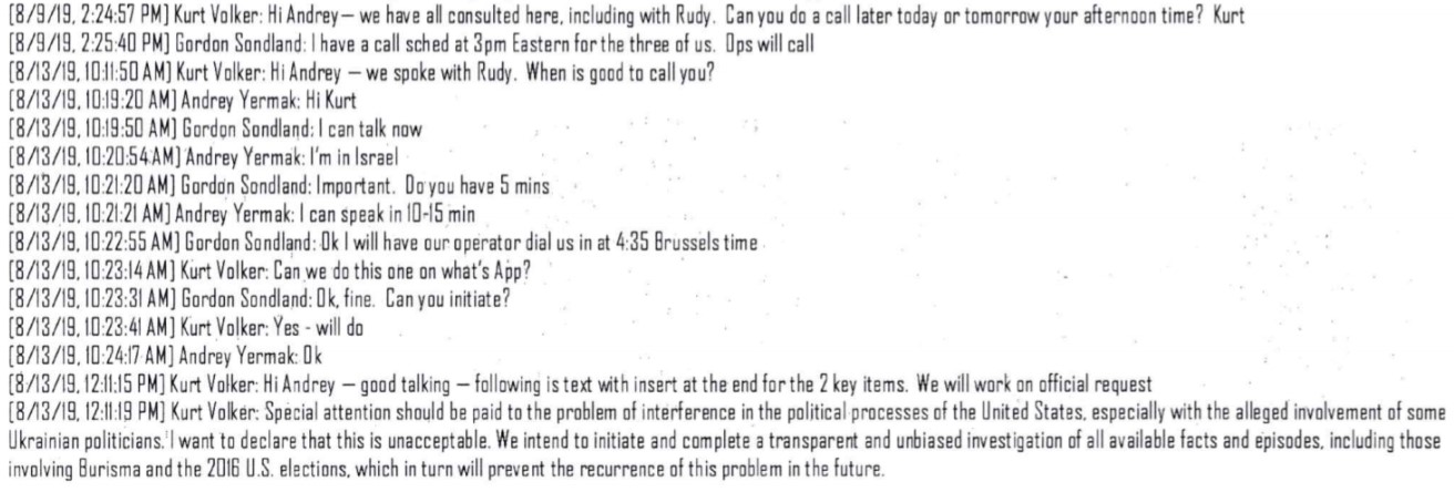 «Джулиани сказал, что это неубедительно. Он сказал: если они [Украина] не хотят расследовать именно Burisma и именно по [вмешательству в выборы] 2016 года, то о чем мы вообще говорим?» — пересказал Волкер дискуссии относительно украинского предложения.
