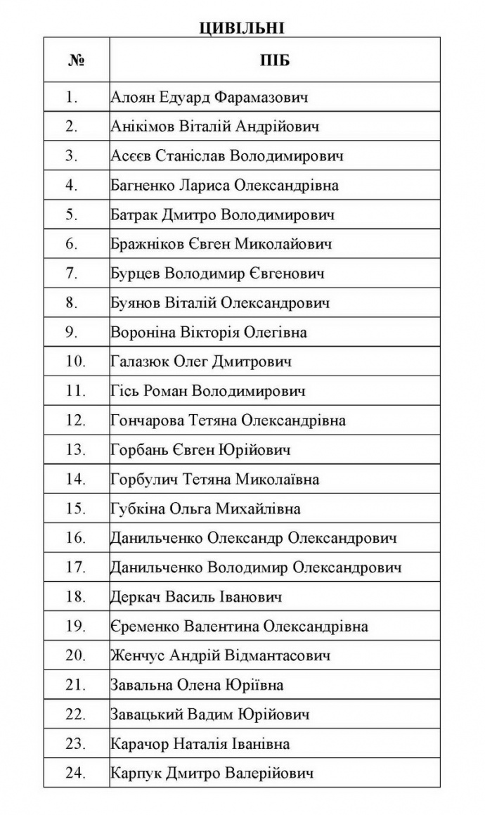 СБУ обнародовала полный список лиц, возвращенных на подконтрольную Украине территорию