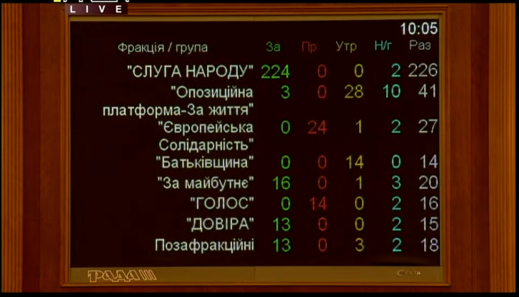 За соответствующее решение проголосовали 269 нардепов, против высказались 38, воздержались 47 депутатов.