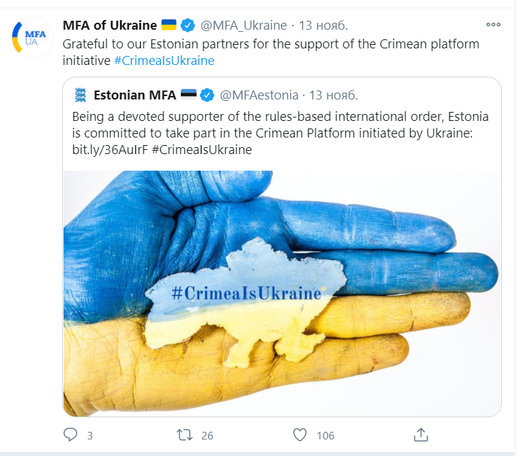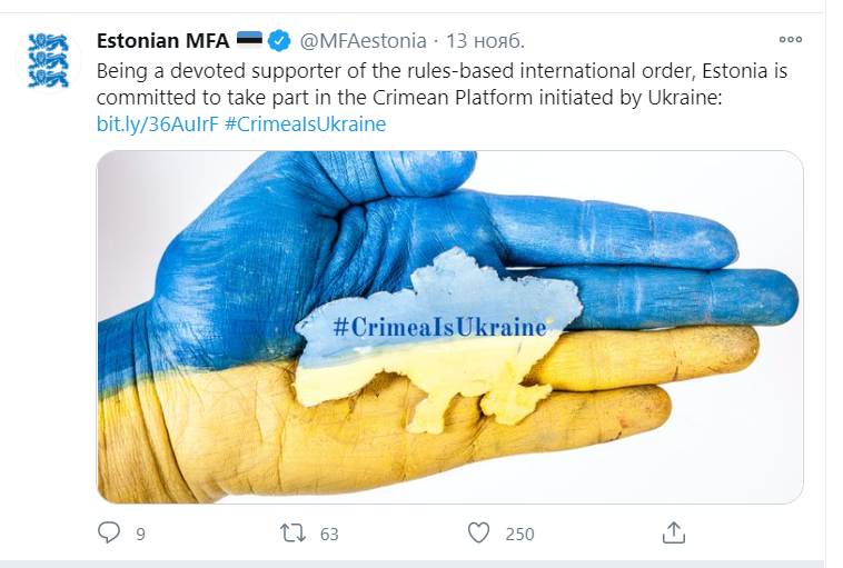 «Вдячні нашим естонським партнерам за підтримку ініціативи Кримської платформи, — відповіли в українському відомстві.