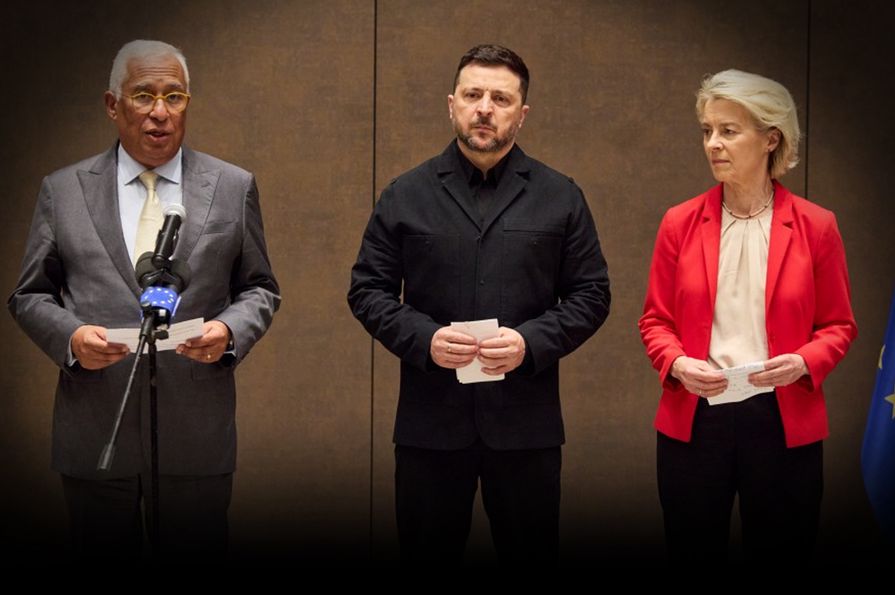Президент України Володимир Зеленський провів зустріч із президентом Європейської ради Антоніу Коштою та президенткою Європейської комісії Урсулою фон дер Ляєн, під час якої сторони обговорили реалізацію рішень Євросоюзу щодо підтримки України та посилення санкцій проти Росії.