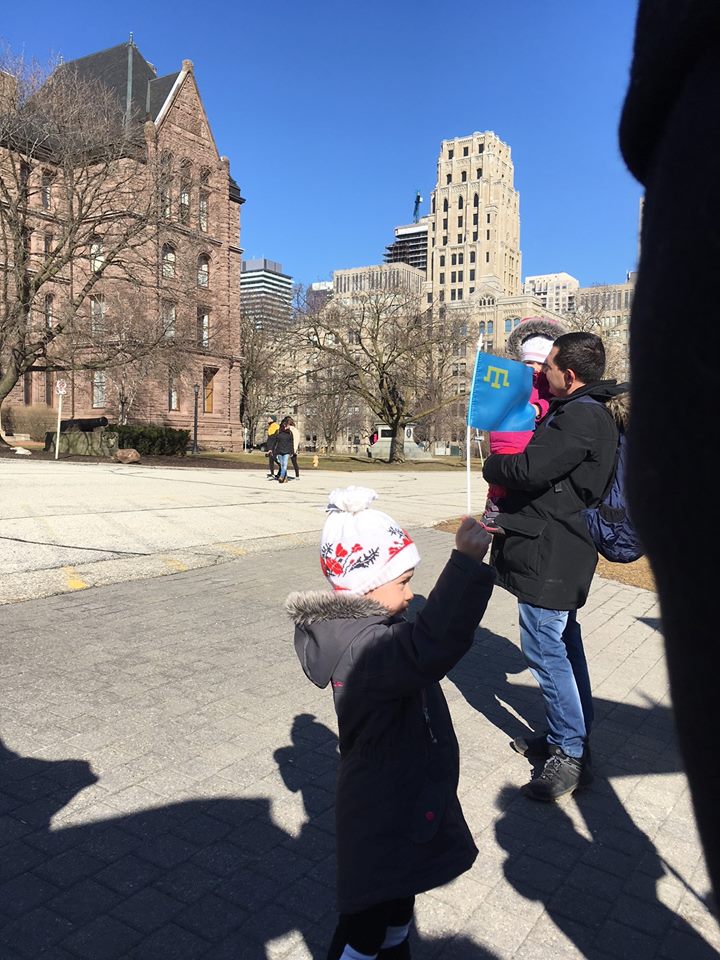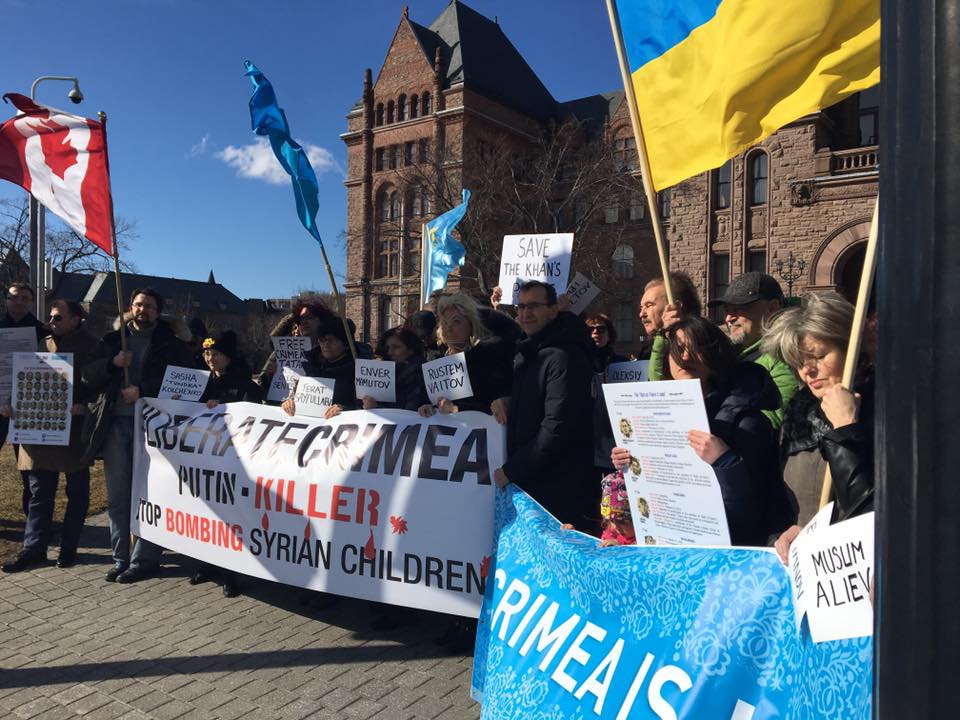 Акция прошла возле Парламента Онтарио. Участники акции держали в руках плакаты с лозунгами: «Крым — это Украина», «Крым будет свободен», «Путин, убирайся из Крыма», «Остановите оккупацию Крыма» и другие.