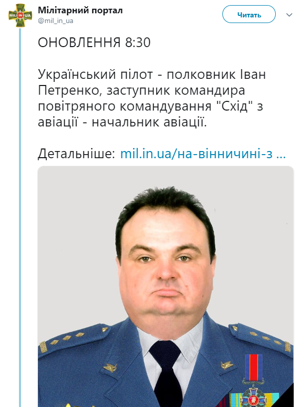 Напомним, что в катастрофе также погиб украинский полковник Иван Петренко.