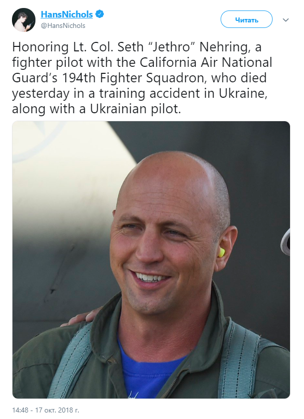 Сет Неринг был пилотом 194 боевой эскадрильи Калифорнийской воздушной национальной гвардии, сообщают американские СМИ. Ему было 44 года.