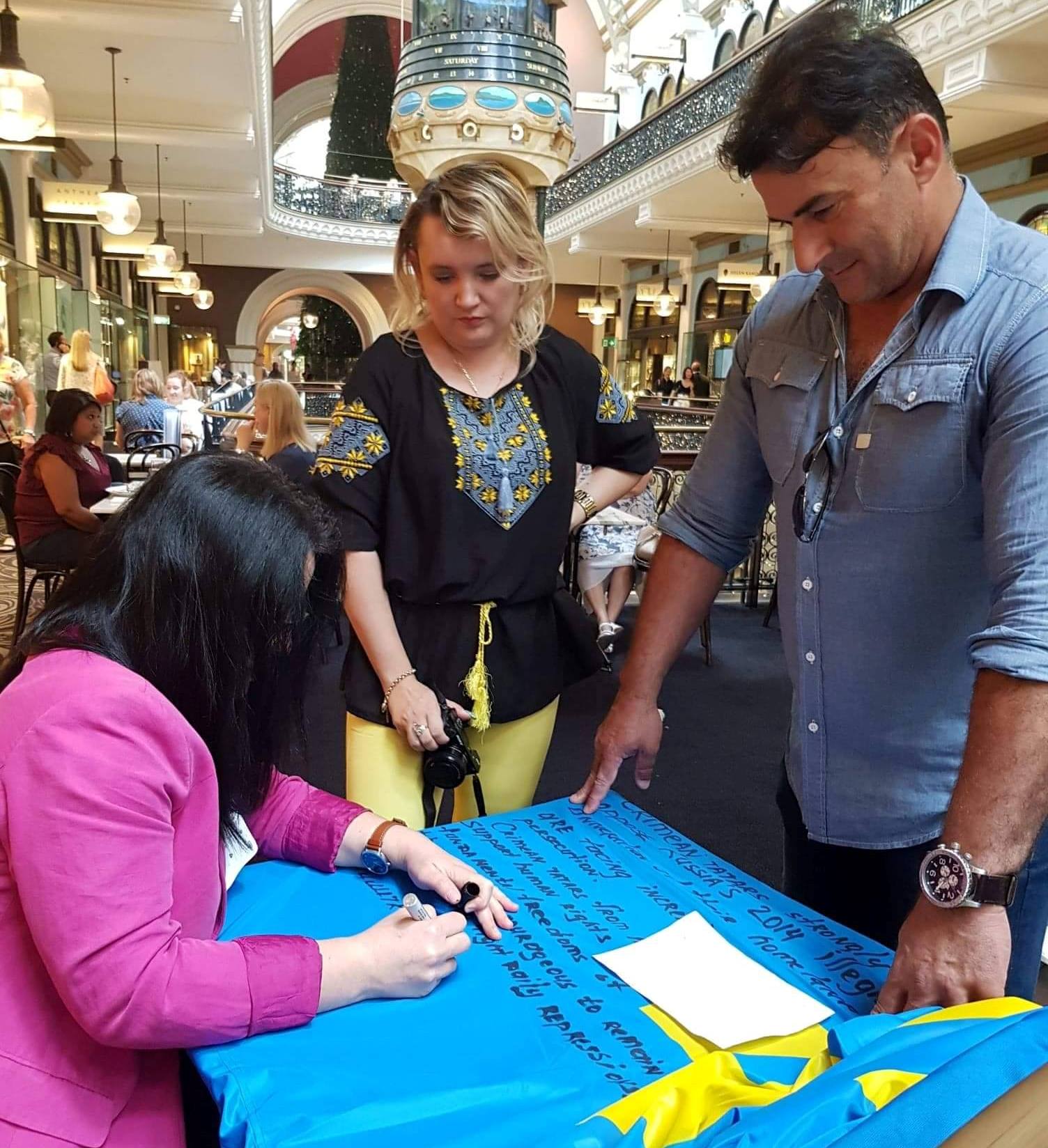 Мероприятие организовали представители украинской и крымскотатарской диаспоры Австралии в рамках акции «Об’єднані Прапором» и кампании «Liberate Crimea». Они развернули большой крымскотатарский флаг, на котором каждый участник имел возможность написать памятные слова.