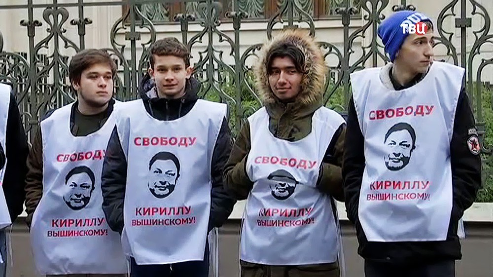 У посольства Украины в РФ прошла акция в поддержку главреда «РИА Новости-Украина» Кирилла Вышинского, которого Украина арестовала по подозрению в госизмене.