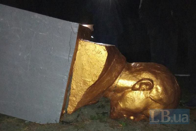 Бюст «вождя мирового пролетариата» повалили вместе с постаментом, сообщает LB.ua. Информации о том, кто это мог сделать, пока нет.