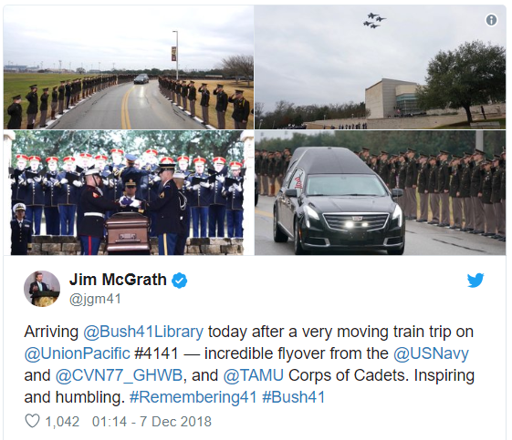 До этого с Бушем простились в Вашингтоне: гроб с его телом был выставлен в ротонде Капитолия, куда пришли тысячи американцев, а затем в кафедральном соборе, где прошло отпевание.