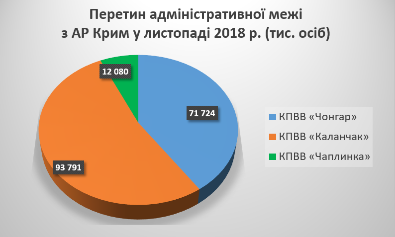 В ноябре 2018 года административную границу с Крымом пересекли более 177 тысяч человек и около 30 тысяч транспортных средств.