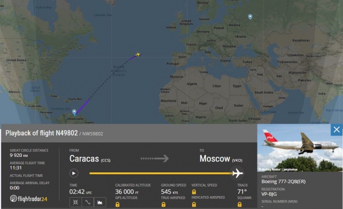Борт покинул Венесуэлу 30 января около 17 часов по местному времени, свидетельствуют данные сервиса Flightradar24.