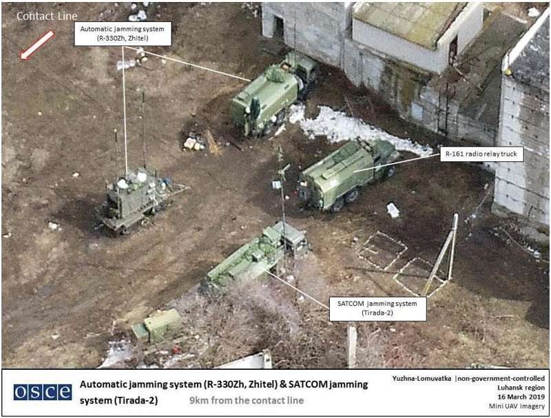 «Российские новейшие системы вооружения — автоматизированная станция помех Р-330Ж «Житель» и комплекс радиоэлектронной борьбы «Тирада-2», зафиксированные Специальной мониторинговой миссией ОБСЕ неподалеку от н.п. Южная Ломоватка (Луганская область — ред.), на оккупированной Россией части Донбасса», — говорится в сообщении.