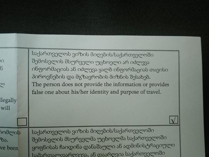 «Тем временем знакомые пишут, что с 27 апреля Грузия закрыла границу для мотоциклистов из России на время майских праздников. Разворачивают с официальным отказом», — написал Левиев, опубликовав и фотографию документа с отказом.