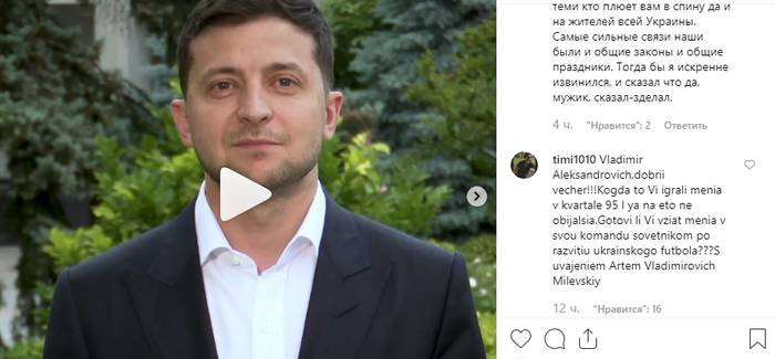 «Владимир Александрович, добрый вечер. Когда-то вы играли меня в «Квартале 95», и я не обижался. Готовы ли вы взять меня в свою команду советником по развитию украинского футбола? С уважением, Артем Владимирович Милевский», — обратился к президенту 34-летний футболист.