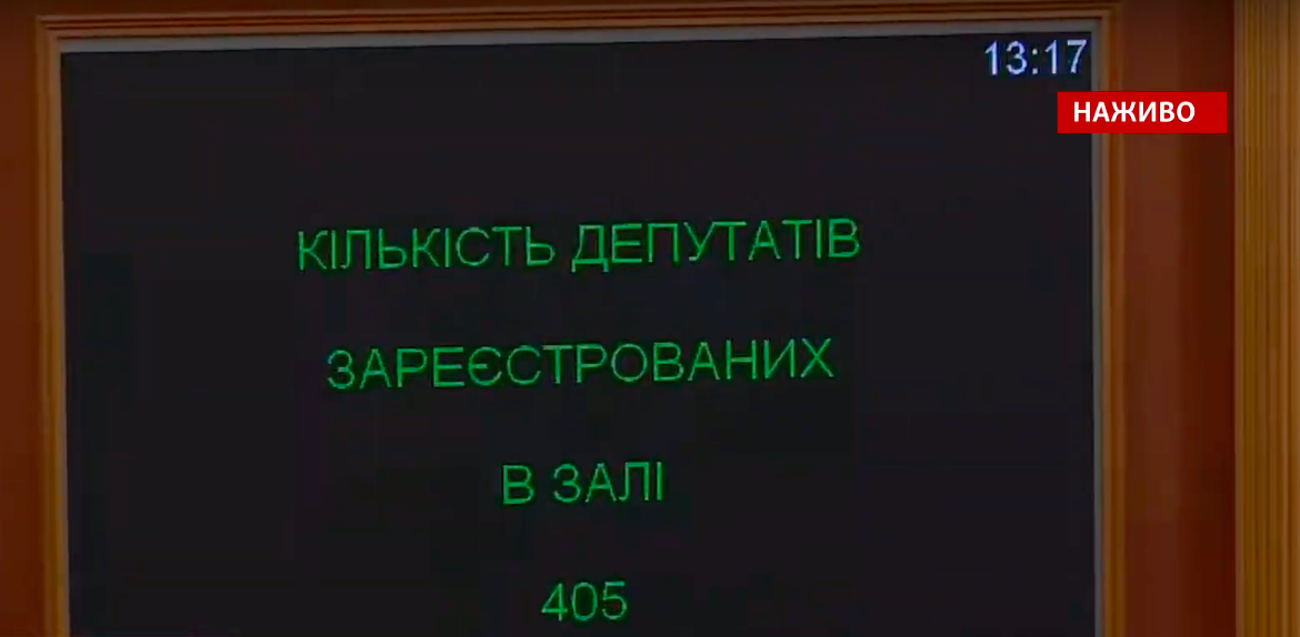 На первом рабочем заседании Верховной Рады зарегистрировались 405 депутатов