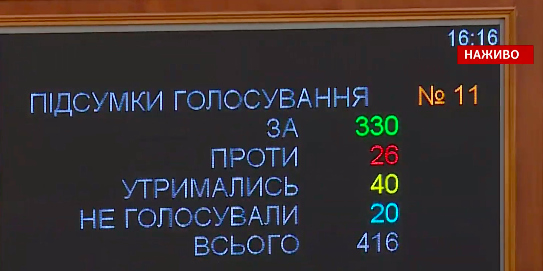 За кандидатуру Стефанчука проголосовали 330 народных депутатов, против — 26. 40 воздержались.