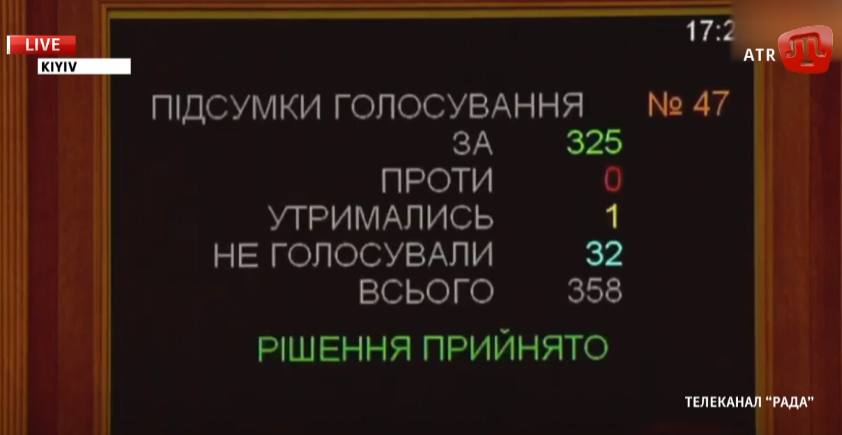 За соответствующее заявление проголосовали 325 народных депутатов, сообщает корреспондент ATR.