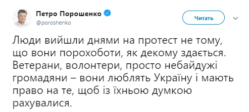 Также, по его словам, люди накануне вышли на протест не потому, что они «порохоботы», а потому любят Украину и «имеют право на то, чтобы с их мнением считались».