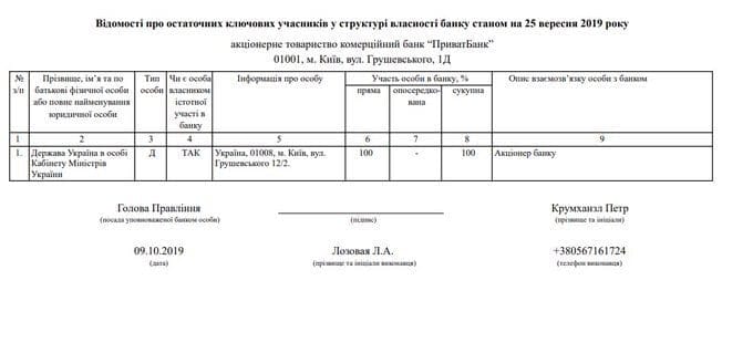 Соответствующая информация указана в сведениях об окончательных ключевых участниках в структуре собственности банка по состоянию на 25 сентября 2019 года.