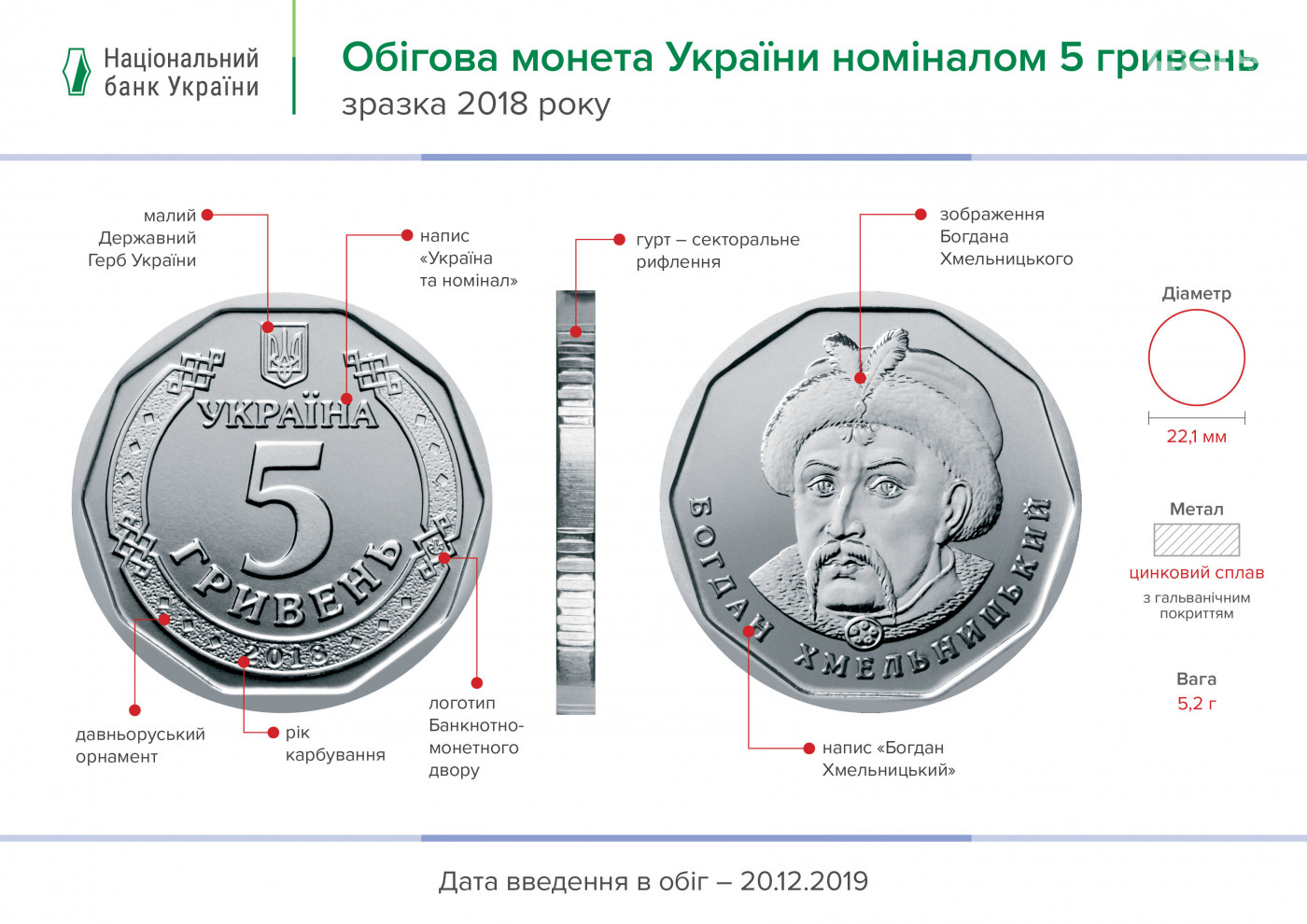 Как сообщается на сайте НБУ, 5-гривневые монеты не будут использоваться вместо купюр, лишь постепенно бумажные 5 гривен будут исчезать из обихода.