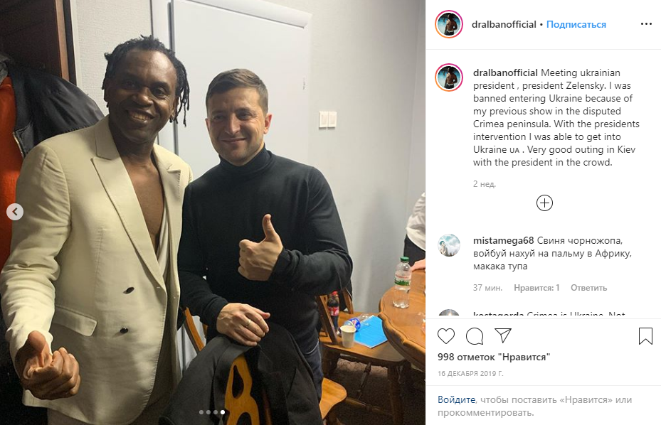 «Мне был запрещен въезд в Украину из-за моего предыдущего шоу на спорном полуострове Крым. Благодаря вмешательству президента я смог попасть в Украину. Отличная прогулка в Киеве с президентом в толпе», — сообщил певец.