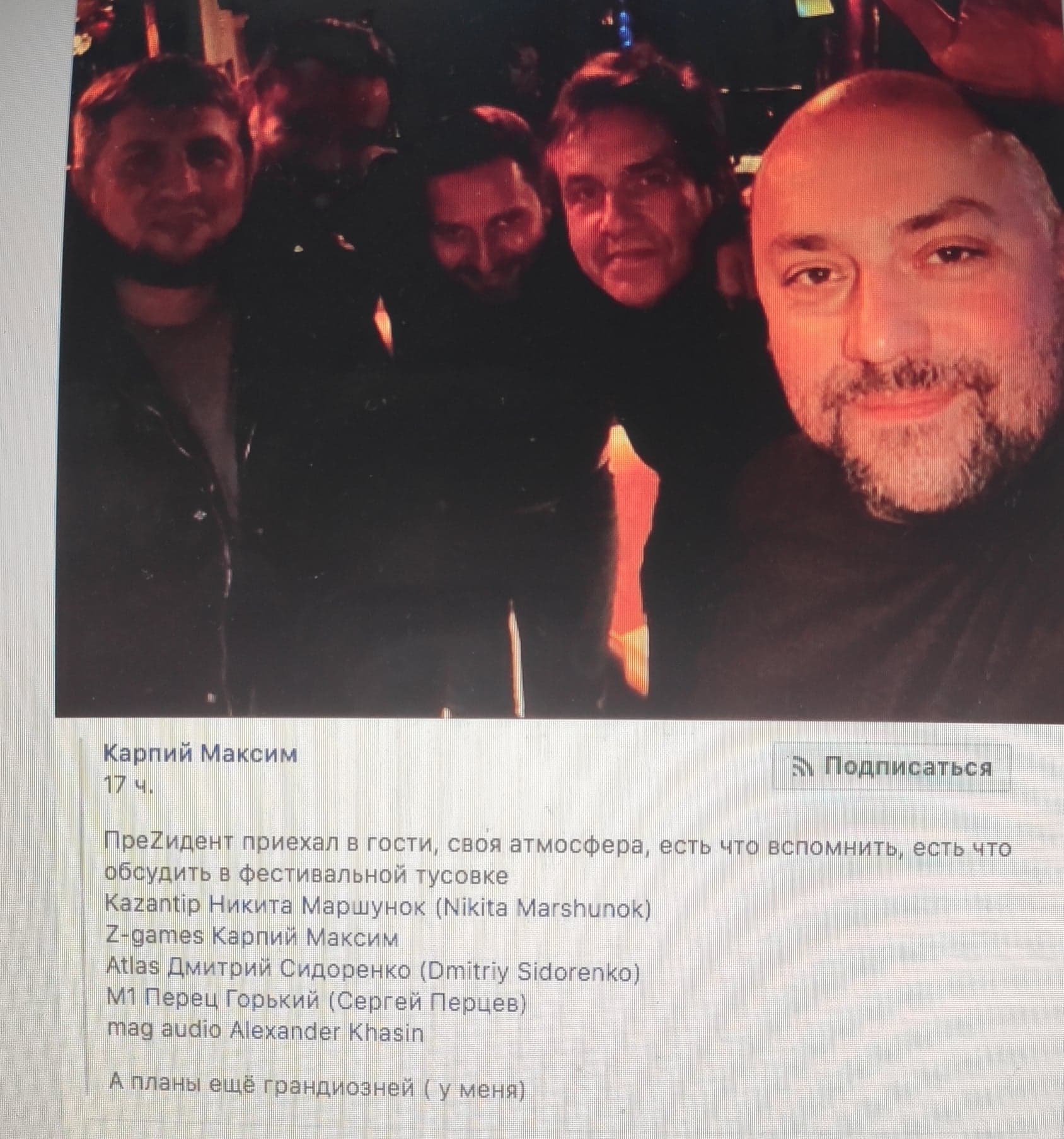 Снимок с Маршунком в Facebook опубликовал организатор спортивно-музыкального фестиваля Z-games Максим Карпий. Он написал, что на встрече с организатором «Казантипа» также присутствовали Дмитрий Сидоренко (организатор музфестиваля Atlas), Сергей Перцев (гендиректор музыкального телеканала M1) и другие.