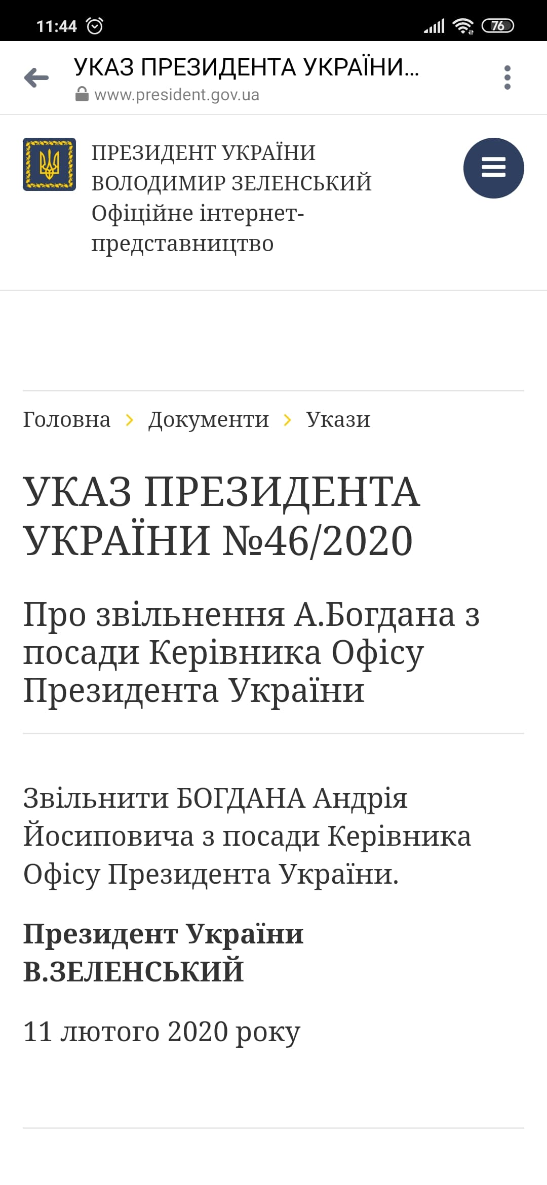 Президент Украины Владимир Зеленский уволил с должности главы Офиса президента Андрея Богдана. На его должность назначен Андрей Ермак.