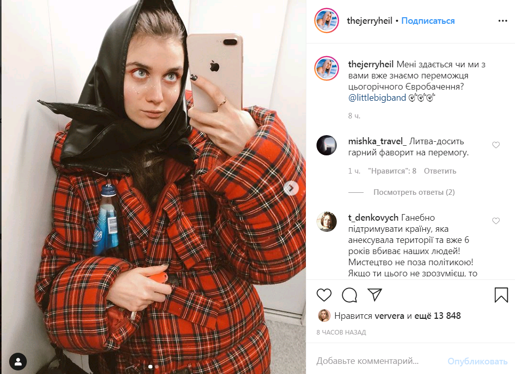 Украинская исполнительница Jerry Heil, которая была участницей национального отбора на песенный конкурс «Евровидение», поддержала российскую группу Little Big и напророчила им победу в этом году.