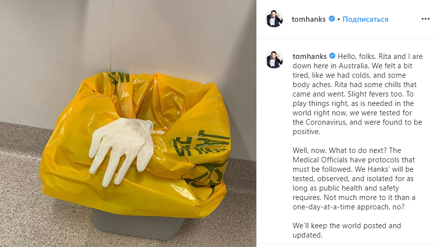 Актер Том Хэнкс и его жена заболели коронавирусом