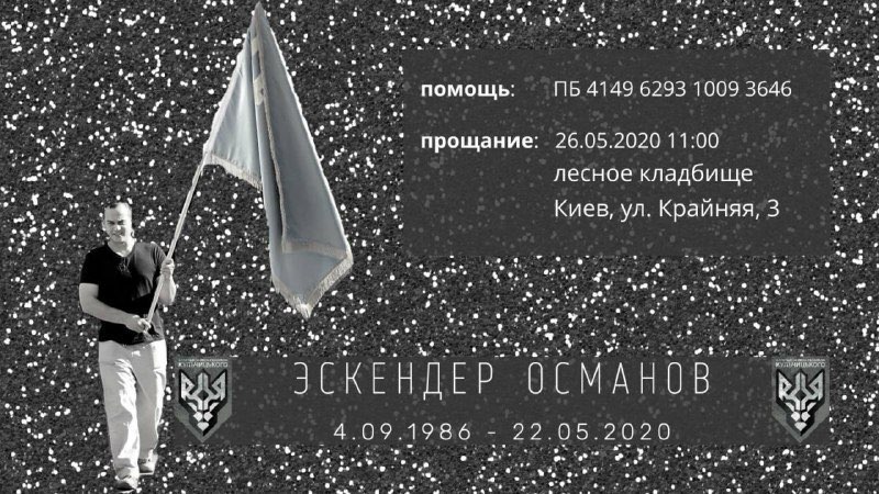 26 травня на Лісовому цвинтарі у Києві попрощалися з Ескендером Османовим — 34-річним кримськотатарським волонтером, який боронив Україну у війні на Донбасі.