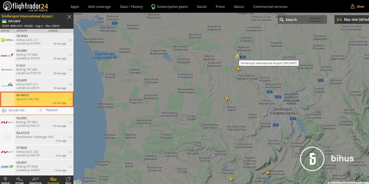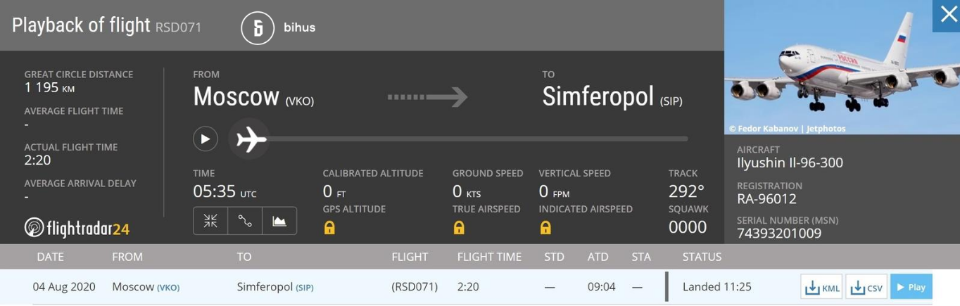 Так, літак ІЛ 96-300 з авіапарку президента РФ приземлився в аеропорту окупованого Сімферополя вранці 4 серпня.