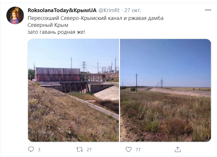 «Північно-Кримський канал, що пересох, та іржава дамба. Північний Крим. Зате ж рідна гавань», — йдеться у дописі.