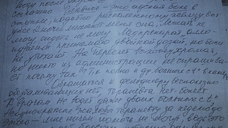 Через адвоката політв'язень передав листа, у якому повідомив подробиці свого стану здоров'я. Чоловік відчуває сильний больовий синдром, через який він протягом кількох ночей не може спати. Прийом знеболюючих препаратів не допомагає подолати біль.