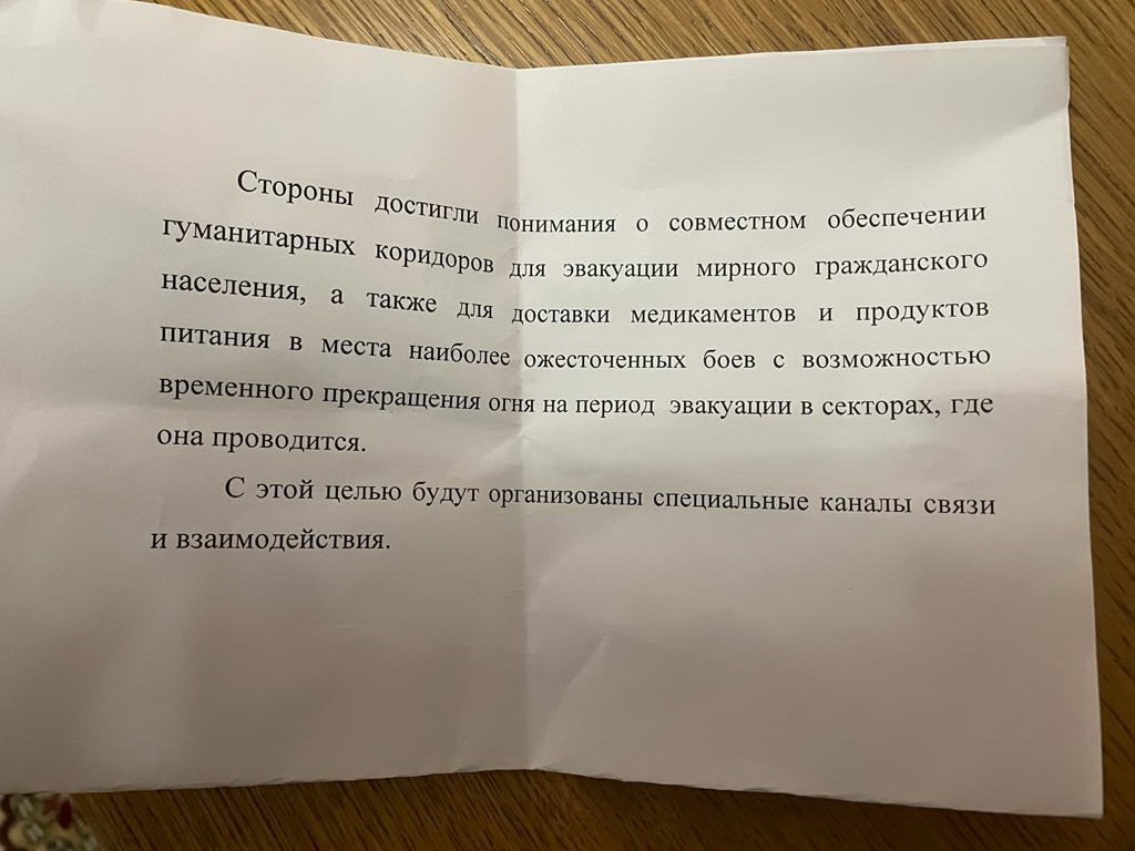 — Гуманітарні коридори для вивезення мирних жителів зі зруйнованих або постійно обстрілюваних сіл і міст.